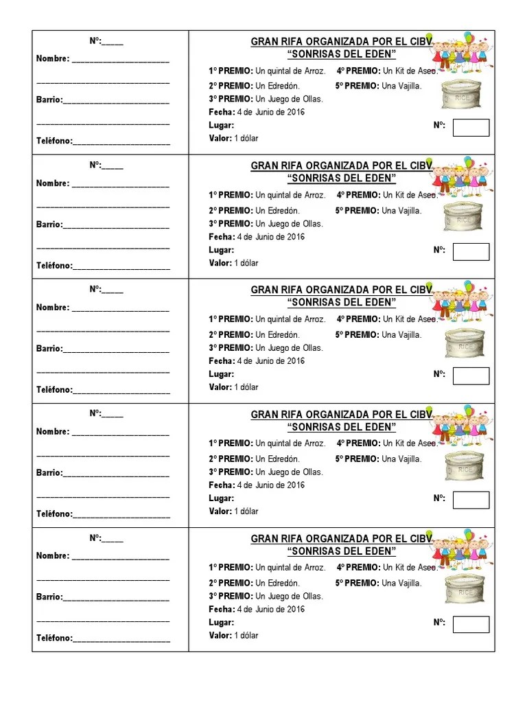 · consigue personas que te ayuden a vender boletos. Una rifa es un tipo de concurso en el cual los participantes compran boletos a.